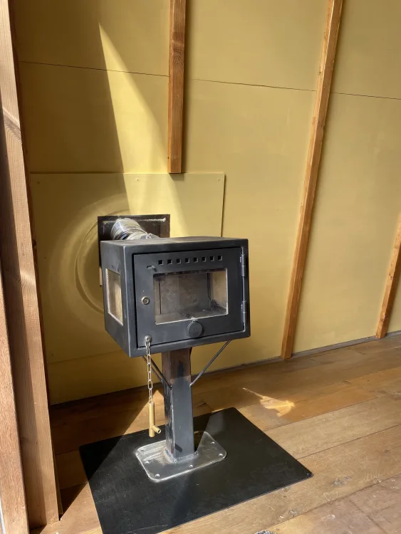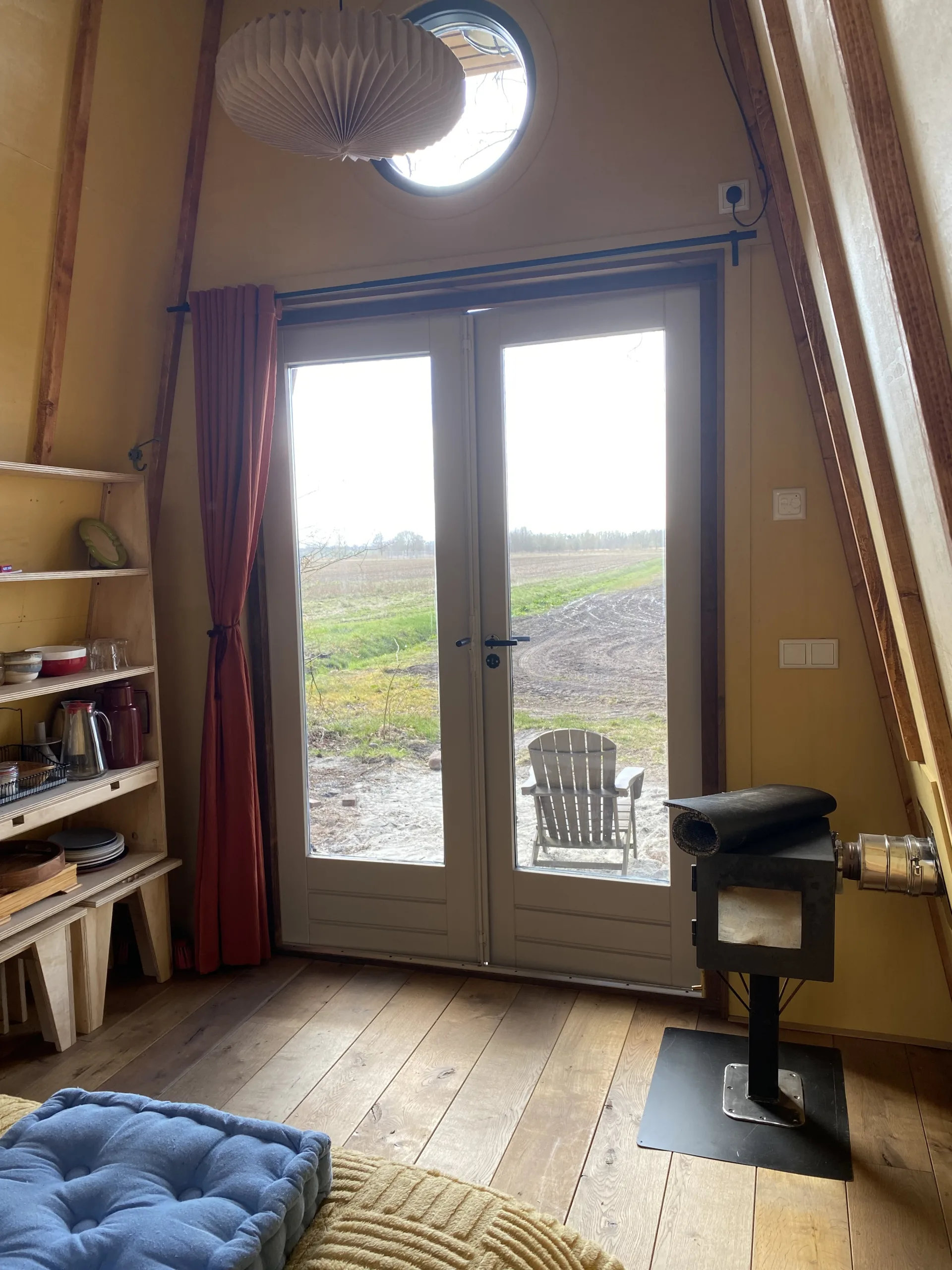 Heerlijk comfortabel voor met z’n twee of lekker alleen. Tweepersoonsbed, houtkacheltje, tafeltje om aan te schrijven of dineren. Droom weg, met het weidse uitzicht over de akkers en het sterrenvenster boven het bed.