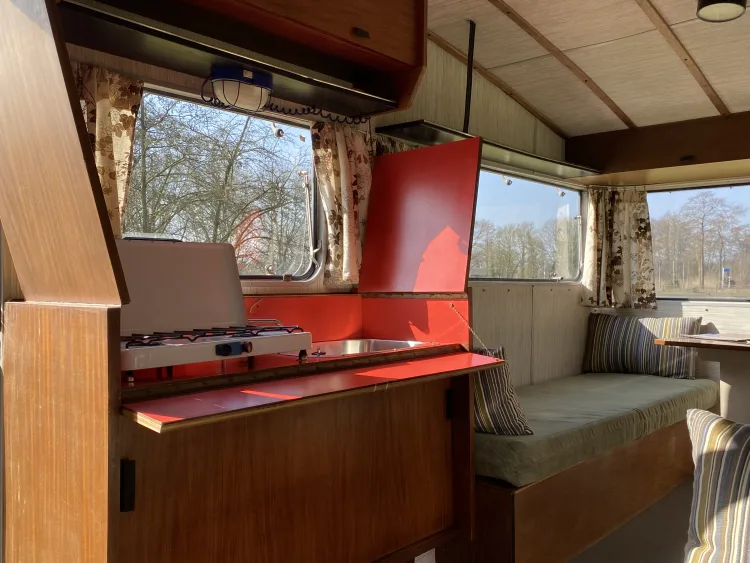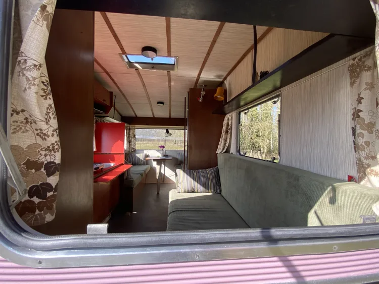Deze oldtimer Sterkeman met een vrolijk en origineel interieur biedt een fijn onderkomen tot aan 4 personen. Compleet met retro inventaris, en naast het keukentje binnen ook nog eens een buitenkeuken! Dit seizoen te huur in een groene kleurrijke oase: de Tuinen van Weldadigheid in Veenhuizen.