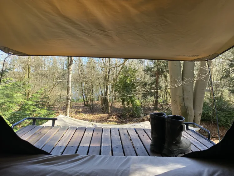 Hou je naast hoogte ook van water, dan zit je helemaal goed. Even verderop in het bos kun je te water gaan, in een bootje of met je jezelf. Het Pingomeer is van glaciale oorsprong wat gevoed wordt door 2 bronnen. Bij de plek waar de bootjes voor gebruik liggen, kun je ook anderen treffen rond het kampvuur of bij een van de aanschuifmaaltijden.