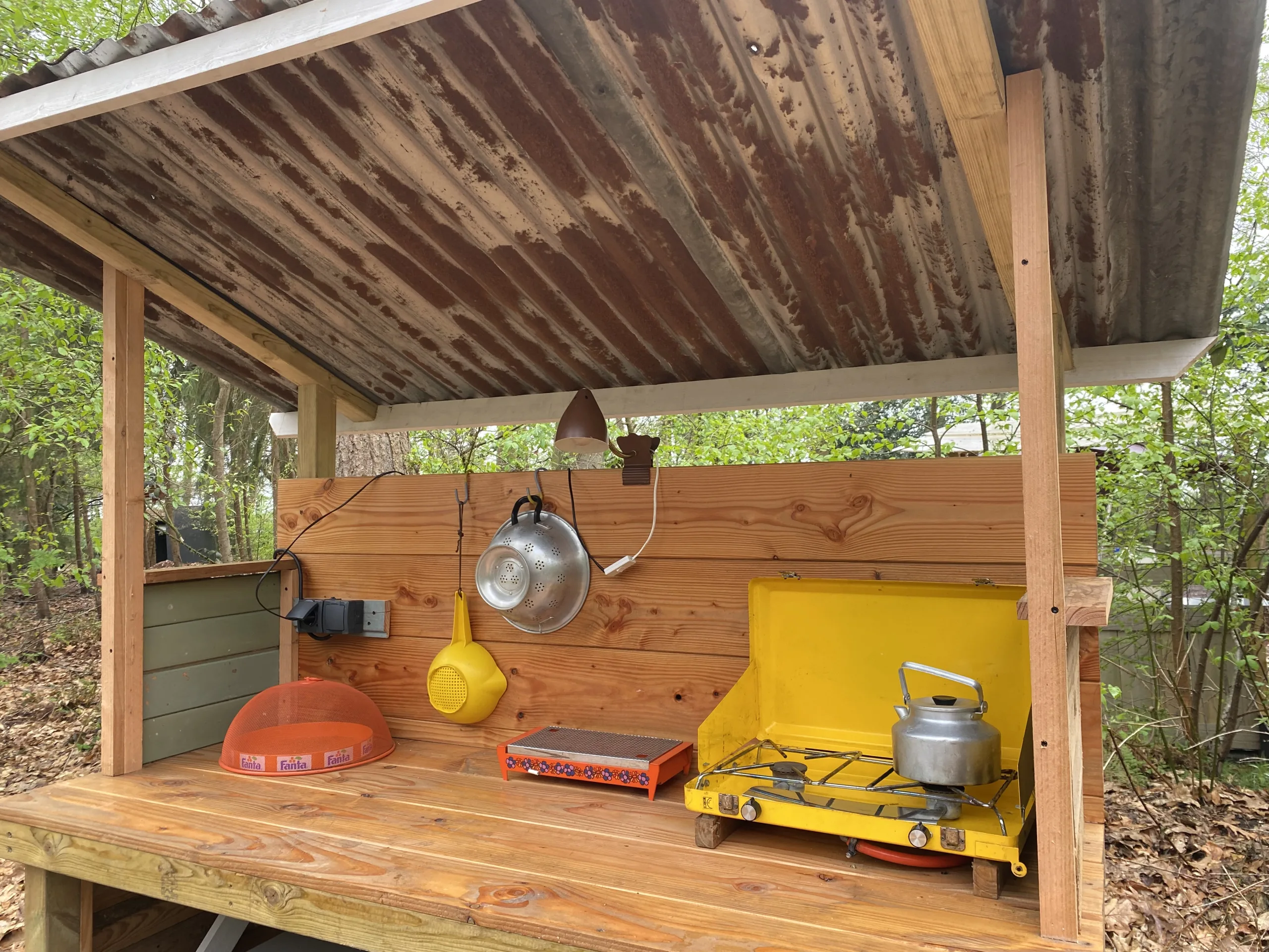 Scrambled of met hele dooier? In deze uitgekookte buitenkeuken, zit je heerlijk buiten te smikkelen van een vers eitje. Altijd droog onder de overkapping. Tenzij de regen uitzonderlijk van opzij komt. Dan ook eiergeluk, want ook binnen is er een keukentje om te gebruiken.