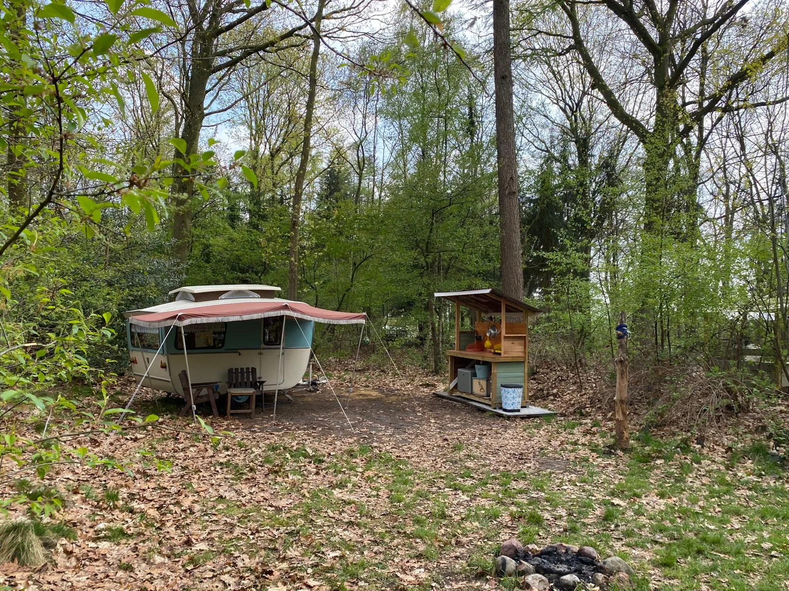 Stel je voor, niet alleen overnacht je in een gave kampeerwagen, ook als je om je heen kijkt zie je enkel fraaie exemplaren. We zetten maar liefst 4 Pop-up kampeerwagens neer, als een neergestreken karavaan. Ieder op een ruime plek, samen in een eigen deel van het grote bos. Naast bomen (heel handig voor de hangmat) heeft dit deel van het bos ook open stukken. Ideaal dus: je schuift je stoel zo naar een zon- danwel schaduwplek.